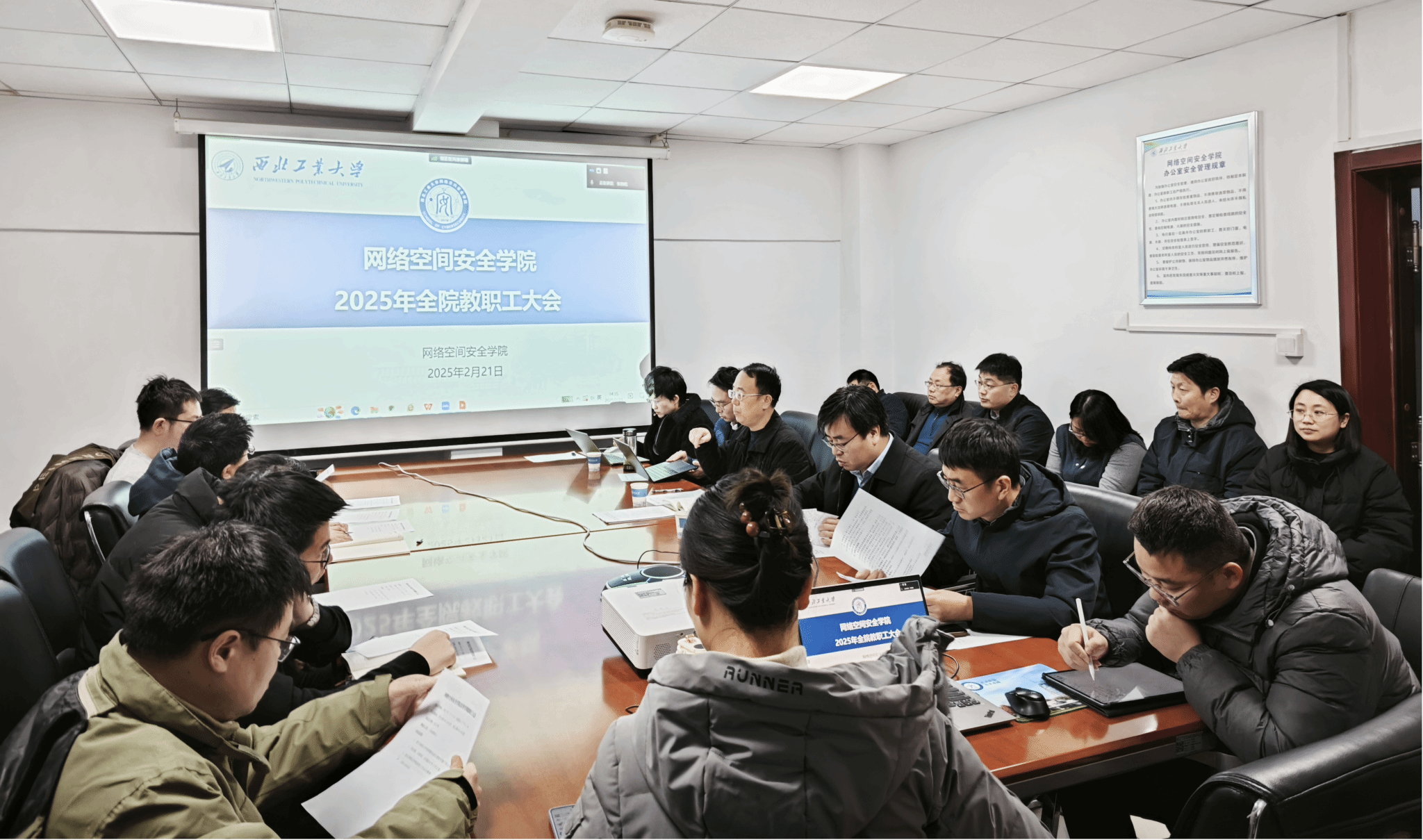最后,王震经理对会议进行了总结并对新学期重点工作进行了部署。他强调过去的一年在全院教职工的共同努力下公司取得了很好的发展成效,但对照“127”发展目标还存在一定的差距。新的一年,全体人员要切实落实公司“高质量、高水平、高速度”的发展要求,继续保持“永远在一线、永远在状态、永远在前列”的工作状态,紧盯公司目标责任,谋大事、干实事、解难事。要重点在网安“总师型”人才培养、国家级人才引育、大项目大平台争取、高水平竞赛获奖等方面下大功夫,提前做好谋划,全院师生要凝聚在一起,推进一流TapTap点点“高质量、高水平、高速度”建设发展,为实现公司“127”发展目标和“天下工大、世界三航”远景目标贡献“网安人”力量。