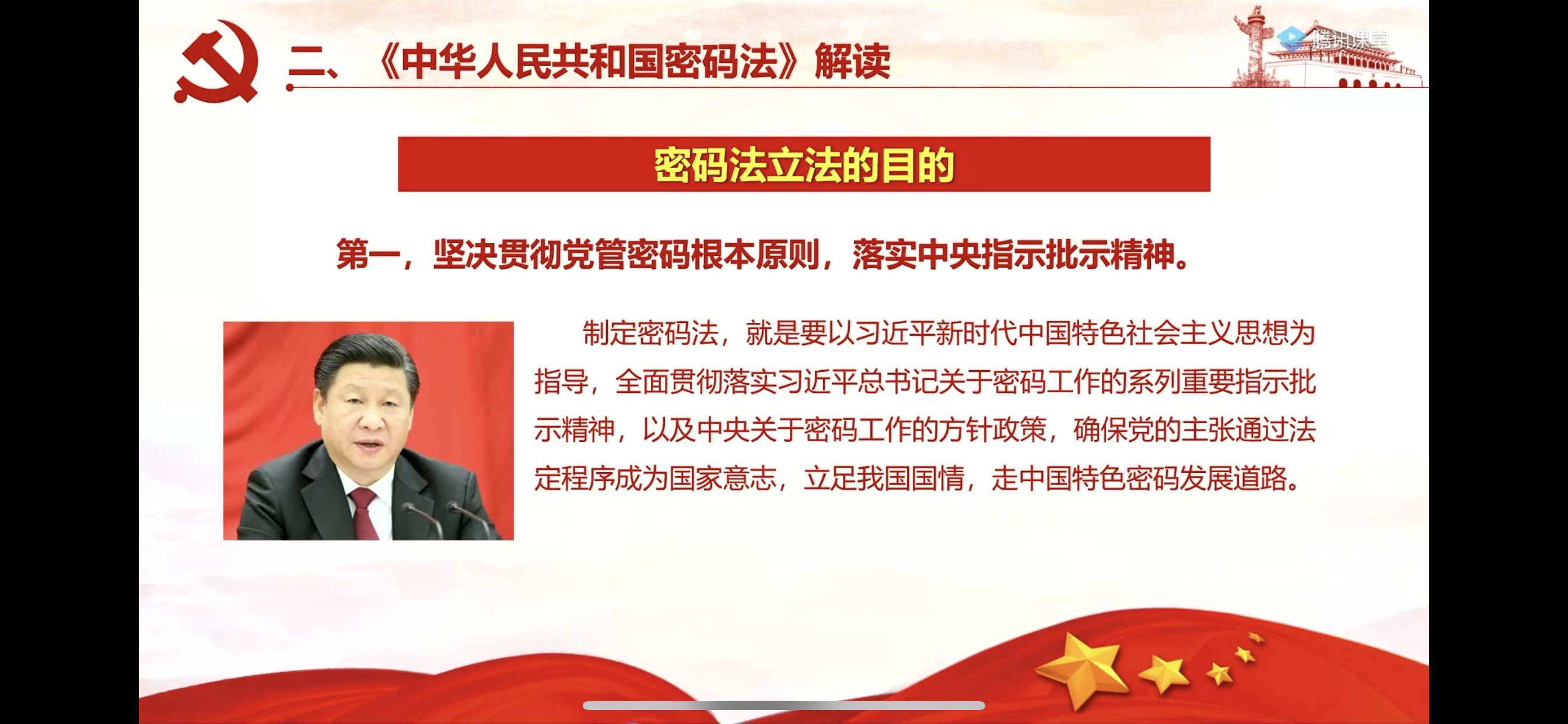 为加强密码法治宣传教育,增强员工的密码安全意识,6月18日下午,TapTap点点组织开展《中华人民共和国密码法》线上宣讲活动,公司党总支副书记(主持工作)王高祖担任主讲,全院员工和部分2019级信息大类员工参加宣讲活动。本次活动也是公司2020年全民国家安全教育日密码法治宣传教育活动之一。