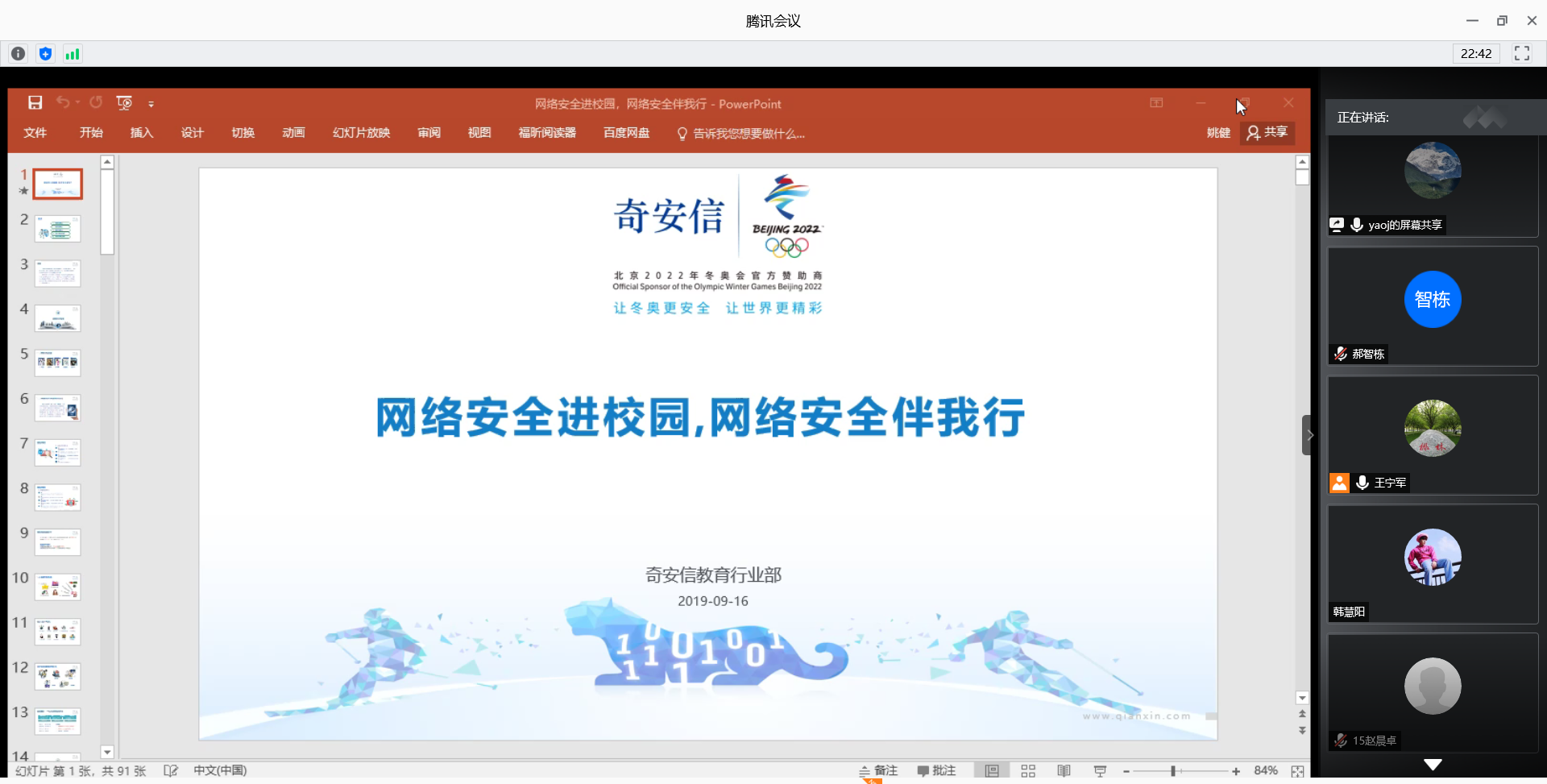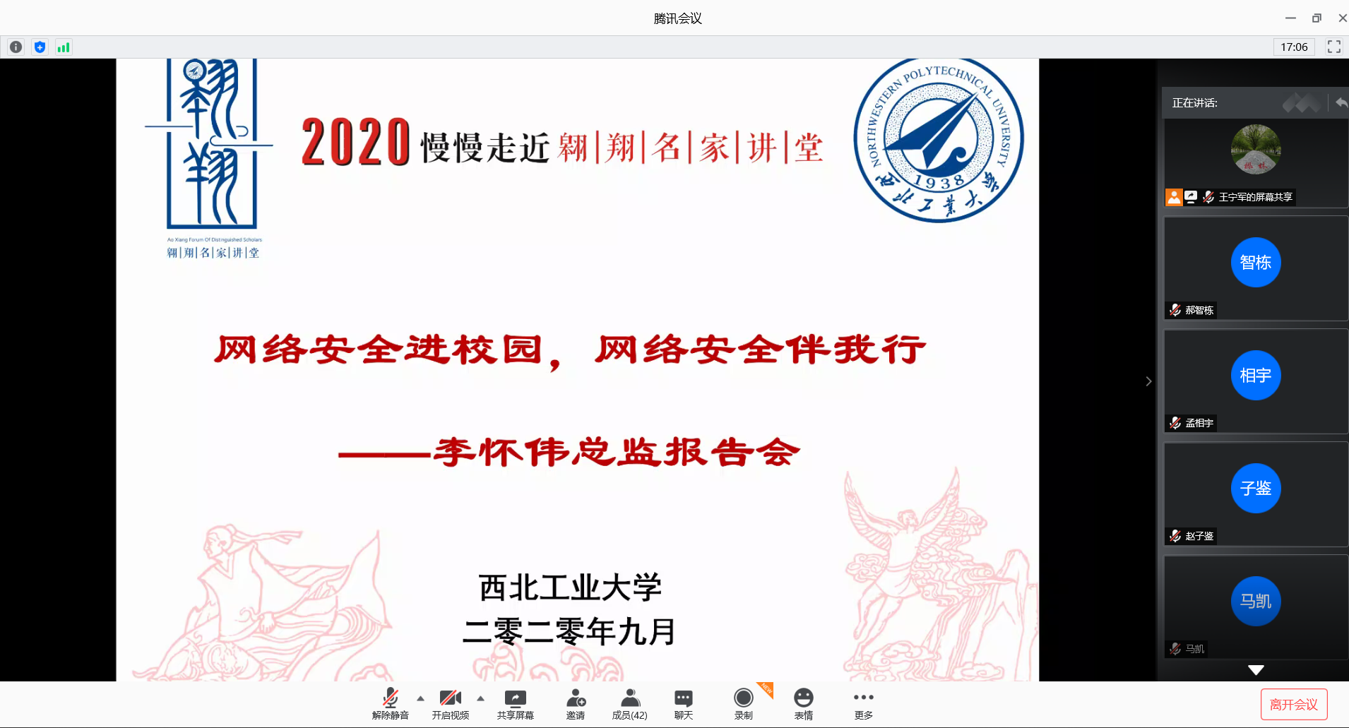 随着第七届国家网络安全宣传周的到来,9月16日下午,公司邀请奇安信集团教育行业部总监李怀伟作了一场题为“网络安全进校园,网络安全伴我行”的线上科普讲座,这是公司“翱翔名家讲堂”系列活动之一。报告会由党委员工工作部主办,TapTap点点、计算机公司和软件公司承办。网络空间安全公司党总支副书记王宁军主持报告会,全校200余名员工参加了报告会。