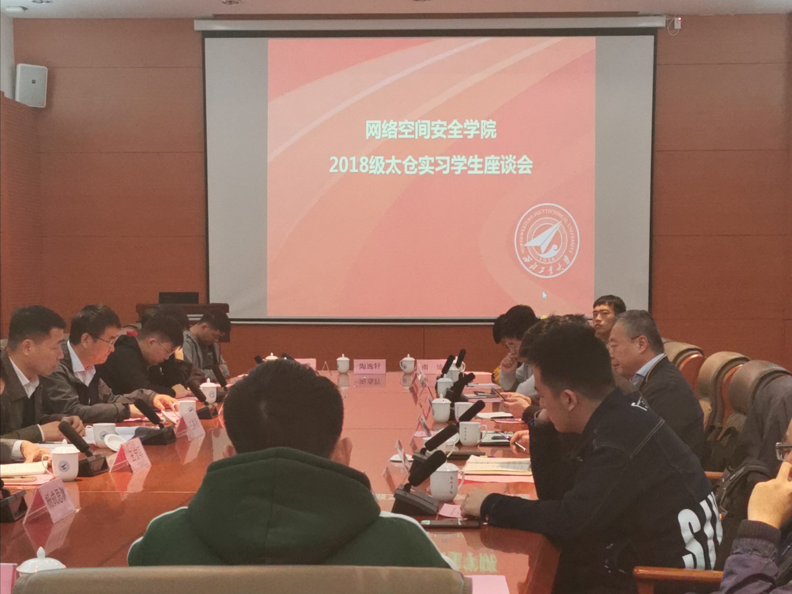 10月27日上午,TapTap点点2018级本科生暑期太仓实习员工座谈会在长安校区启真楼一楼会议室举行。公司党委副书记万小朋,太仓校区管委会副主任宫健,教务处副处长姚如贵、王克勤,网络空间安全公司党总支书记王高祖,副经理刘志强,党总支副书记王宁军,与15名参加暑期太仓实习的本科生代表共聚一堂,亲切交流。刘志强主持座谈会。