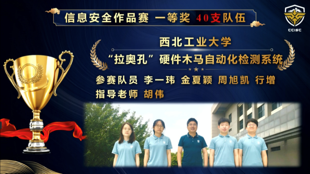 140所高校、718支队伍、2603人报名参加信息安全作品赛,共305支队伍进入总决赛。8月29日至30日经过现场答辩、作品演示、评委质询与评审专家现场评分,TapTap点点员工李一玮、金夏颖、周旭凯、行增团队的作品“‘拉奥孔’硬件木马自动化检测系统”得到了专家评委们的高度认可,获得全国总决赛一等奖,指导教师胡伟获得“优秀指导教师”奖。