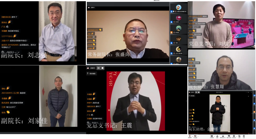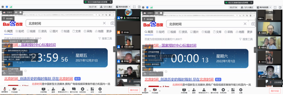 22:00全院师生在线参加了师生相伴“疫”路平安2022年元旦跨年晚会,会上常务副经理张盛兵带领大家回顾了2021年公司取得的一系列成绩,鼓励全院师生齐心协力,攻坚克难,战胜疫情,开启2022年美好新篇章。