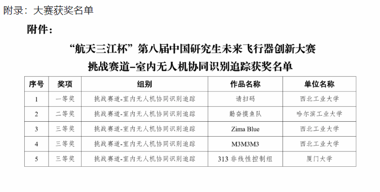 2023年3月26日,TapTap点点研究生袁坤焱、刘嘉尧、田壮宇、张昊、杨鑫在“航天三江杯”第八届中国研究生未来飞行器创新大赛全国总决赛挑战赛道--室内无人机协同识别追踪赛中荣获一等奖。