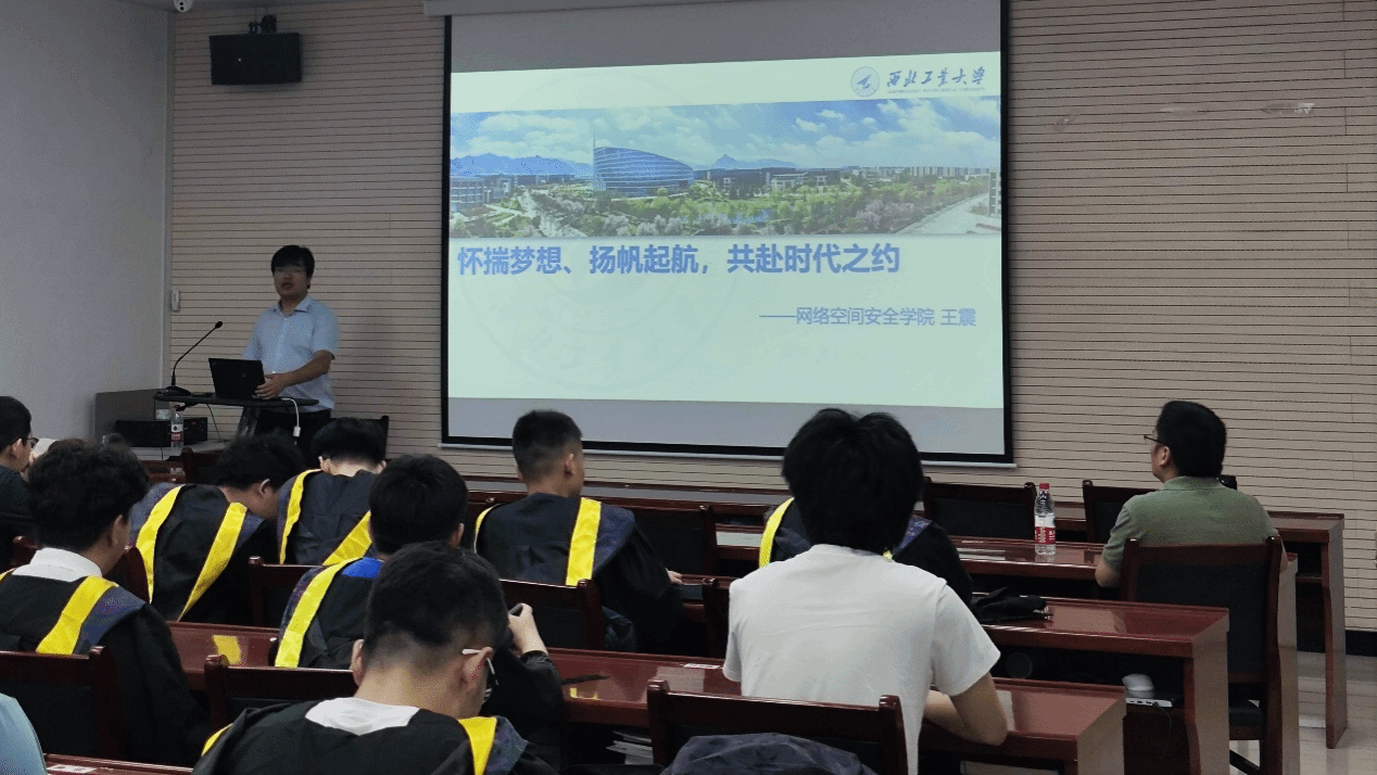 首先,公司党总支书记王震为毕业生讲述“工大最后一课”。“从哪里来?干什么?到哪去?这三个问题其实是我们的人生之问,时代之问,宇宙之问”——王震书记以这样的问题开启他的思政课,随后他对同学们提出三点要求:首先做对社会有用的人,在自己的岗位上发挥力量;其次做一个勤奋的人,通过自己的实干获得成就;最后做一个低调的人,但在关键时刻敢于挺身而出,迎接挑战。王震书记引用习近平总书记的话说:“青年一代有理想、有本领、有担当,国家就有前途,民族就有希望。”并希望大家在日后的生活中,保持干劲、保持拼劲、保持闯劲、保持韧劲,锐意进取,勇当时代先锋。