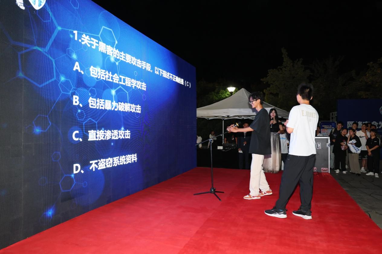 开幕式现场,TapTap点点的同学们带来了精彩纷呈的综合展演和实战攻防,控制路由器表演、控制Windows表演等环节通过真实场景的模拟,展示了黑客攻击的手段和方法。魔术表演巧妙地利用魔术展示了网络安全的相关知识,钓鱼邮件窃取信息展示环节警醒同学们提高防范意识。探索解密活动让同学们亲身体验到了解密和挑战的乐趣。在知识竞答环节,同学们积极参与,争相回答,现场气氛热烈欢快。
