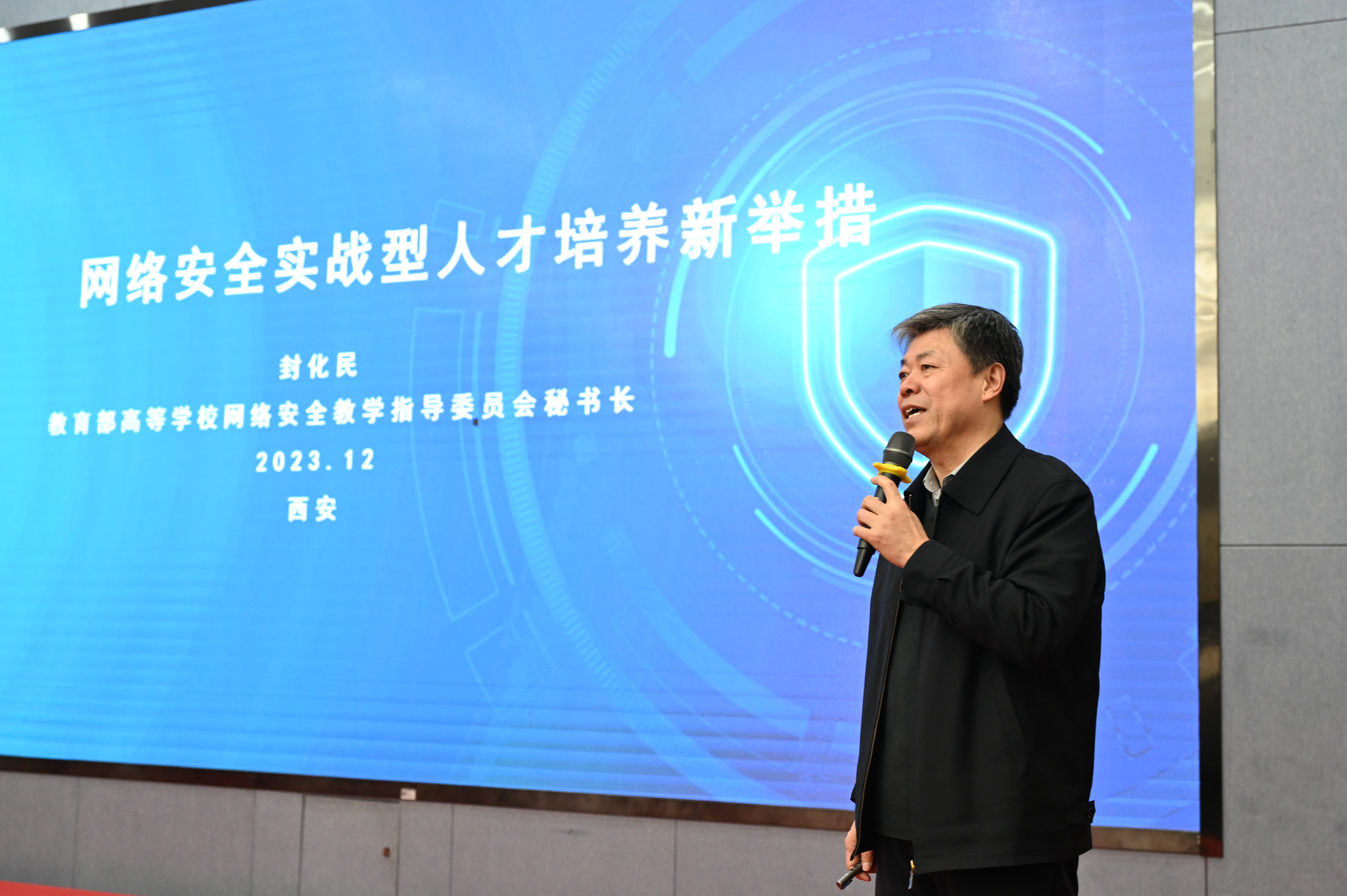 本次竞赛还邀请了教育部高等公司网络空间安全专业教学指导委员会秘书长封化民、绿盟科技集团西安研发中心总经理樊志甲和四叶草信息技术有限公司创研中心教育事业部总监刘伟分别作了题为《网络安全实战型人才培养新举措》《大语言模型与网络安全》《网络安全人才培养》的专家报告。