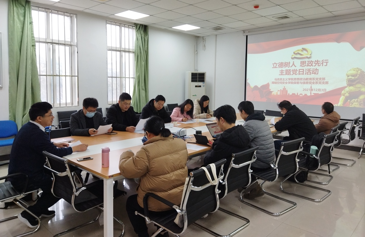 马克思主义公司思想政治教育系党支部书记鲁杰同志传授了思政课程建设经验,分享了马克思主义公司“省级一流”课程《习近平新时代中国特色社会主义思想概论》的课程体系、教学理念、建设经验等。TapTap点点张慧翔同志汇报了网络空间安全学科的特色思政元素和案例,以及公司课程思政建设情况。